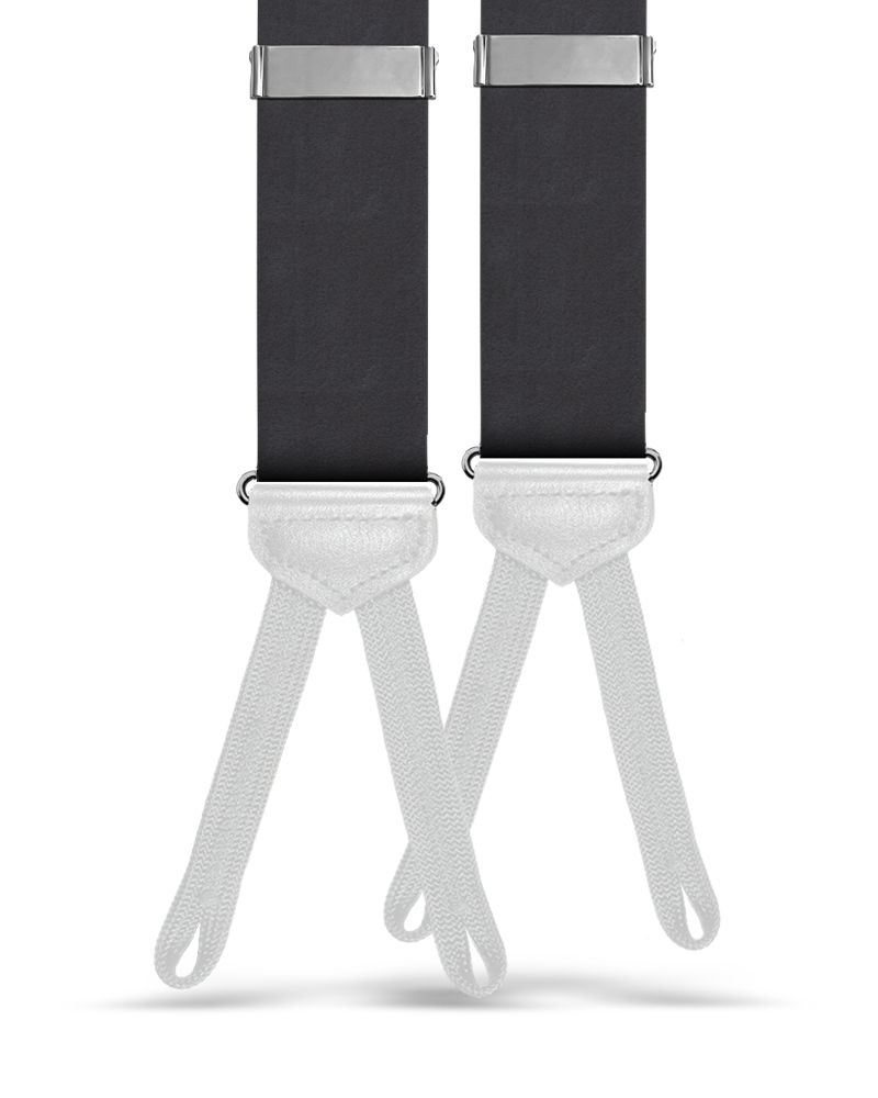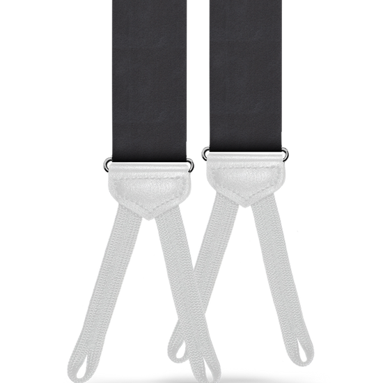 Satin Silk Suspenders w/ White Braided Ends - Black